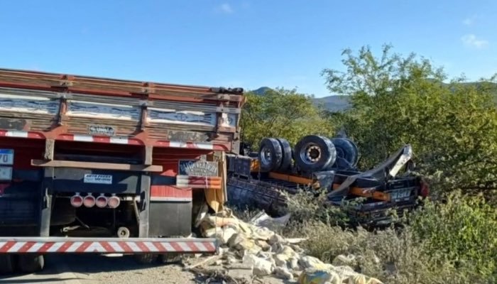 Dois homens morreram após um engavetamento entre três caminhões, na BR-407, próximo ao distrito de Flamengo, em Jaguarari, no norte do estado. O acidente ocorreu na manhã desta terça-feira (24).