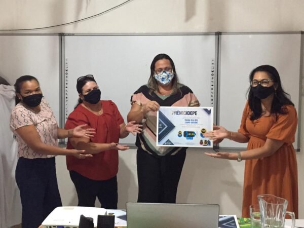Durante o ensejo, a Secretária de Educação prof.ª Fabiana Ribeiro, recebeu um representante da GRE que veio em nome da Gerente da Regional Anete Ferraz, que partcipu da cerimonia de forma virtual, para entrega da certificação das Premiações do Município e das três escolas que atingiram percentual em crescimento na Regional no IDEPE.