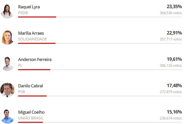 Em PE: Raquel Lyra assume a ponta; são 33,68% das urnas apuradas