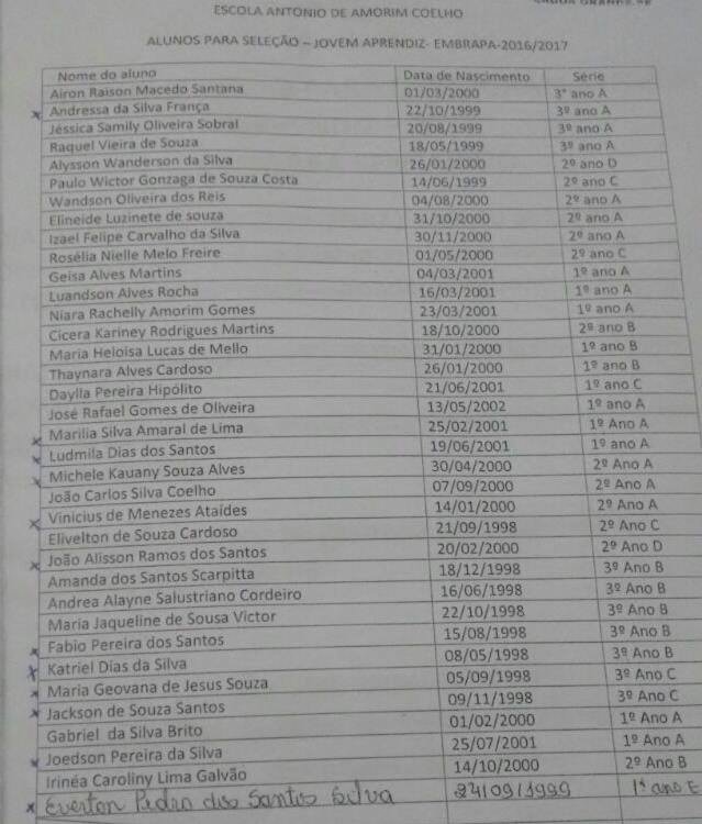 Atenção! Os alunos listados abaixo devem preparar um CURRICULUM e comparecer no seu respectivo turno escolar à secretaria da escola no dia 16/11 (quarta-feira) munido da ficha de inscrição para participar de uma reunião.