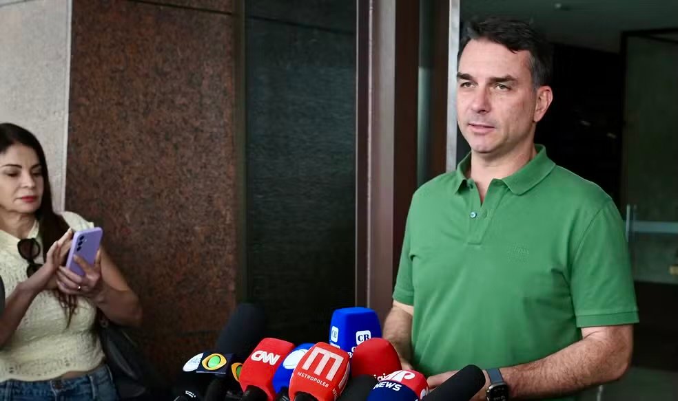 Filho mais velho do ex-presidente Jair Bolsonaro (PL), o senador participou de um culto evangélico em Brasília neste domingo. Na saída, ele indicou que a contrapartida para retirar a pré-candidatura ao Palácio do Planalto envolve a discussão de um projeto de anistia aos condenados pelo Supremo Tribunal Federal (STF) pela trama golpista, o que beneficiaria diretamente seu pai, que está preso.