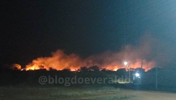 Um incêndio de grandes proporções, na noite desta quinta-feira (29), próximo a Lagoa Grande e ao distrito de Izacolândia, em Petrolina, assusta moradores. O incêndio foi identificado durante a tarde.