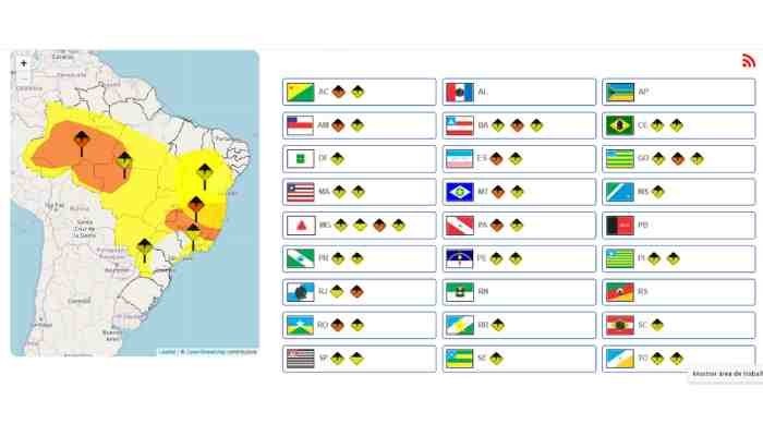 O alerta laranja é o segundo na escala utilizado pelo Inmet, que varia entre o amarelo (perigo potencial), o laranja (perigo) e o vermelho (grande perigo). Veja abaixo os estados em laranja:
