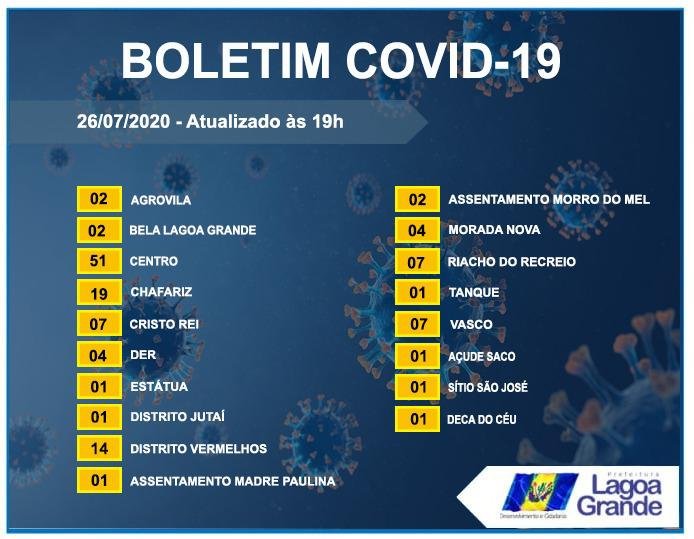 Lagoa Grande registra 126 casos do novo Coronavírus. 84 deles só no Centro, Chafariz e Vermelho