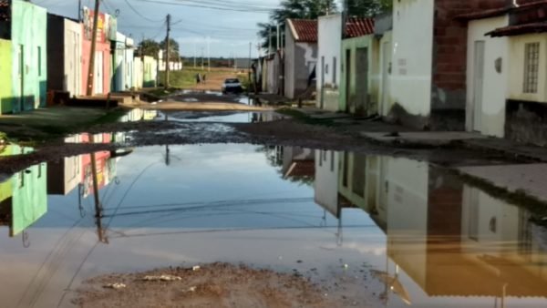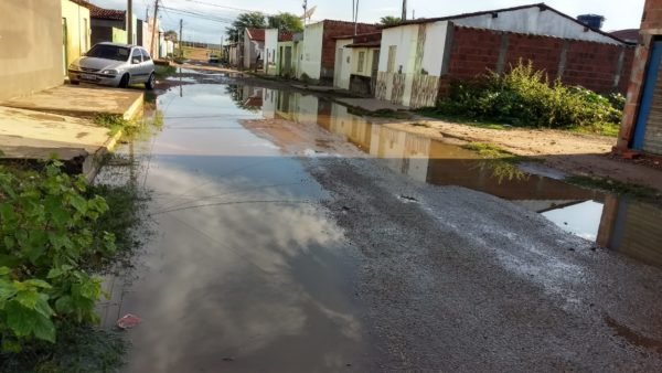 ”Ele colocou duas carradas de aterro na frente da casa dele aí impede a água descer tanto para direita ou esquerda. A água está empossada na frente das casas até próximo o postinho de saúde.” Disse José Roberto, leitor do blog do Everaldo.