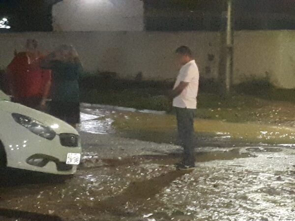 A obra quebrou um trecho do asfalto nas duas vias e a vala virou um quebra cabeça para vários moradores que acabaram caindo e atolando no espelho d’água. O secretário de infraestrutura Ademar Nonato e o vereador Professor Vavá estiveram no local ajudando os motoristas.