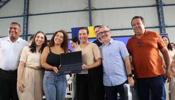 Olavo Marques participa de evento com Raquel Lyra; ato entregou 115 notebooks aos professores