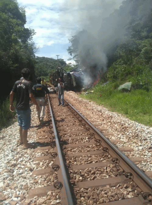 - Polícia Rodoviária Federal (PRF) diz que suspeita é de que o ônibus tenha perdido o freio.