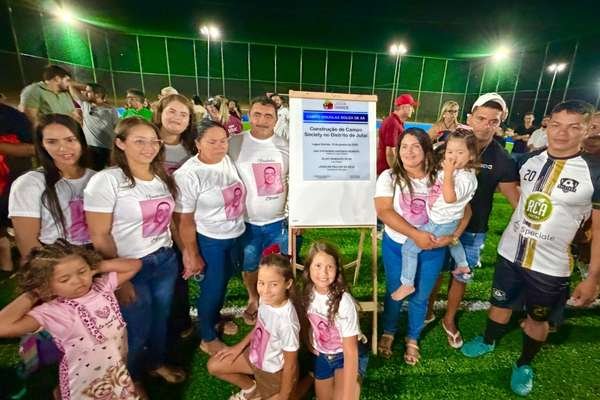 O Campo recebeu o nome de Douglas Souza de Sá (in memoriam), um apaixonado por esporte que cresceu imerso no mundo do futebol. A nova área de lazer entregue pela prefeita Catharina Garziera foi amplamente prestigiada pela população e atletas, que lotaram o espaço, para a solenidade. O ato também contou com a presença do vice-prefeito Olavo Marques; dos pais, irmãos, esposa e da filha do homenageado; do chefe distrital Ericsson Rodrigues; secretários e secretárias, entre elas, Joseilde Paulino e Maria Kaline; além dos membros do Legislativo Municipal e demais colaboradores.