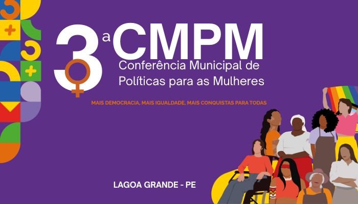A prefeitura de Lagoa Grande, através do Conselho Municipal dos Direitos da Mulher e da Coordenadoria Especial de Atenção à Mulher, em conjunto com a Secretaria de Assistência Social, convida a população lagoa-grandense para a 3ª Conferência Municipal de Políticas para as Mulheres.