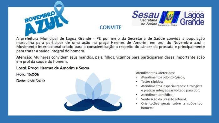 Prefeitura de Lagoa Grande realizará neste terça (26), ação em prol do novembro azul.