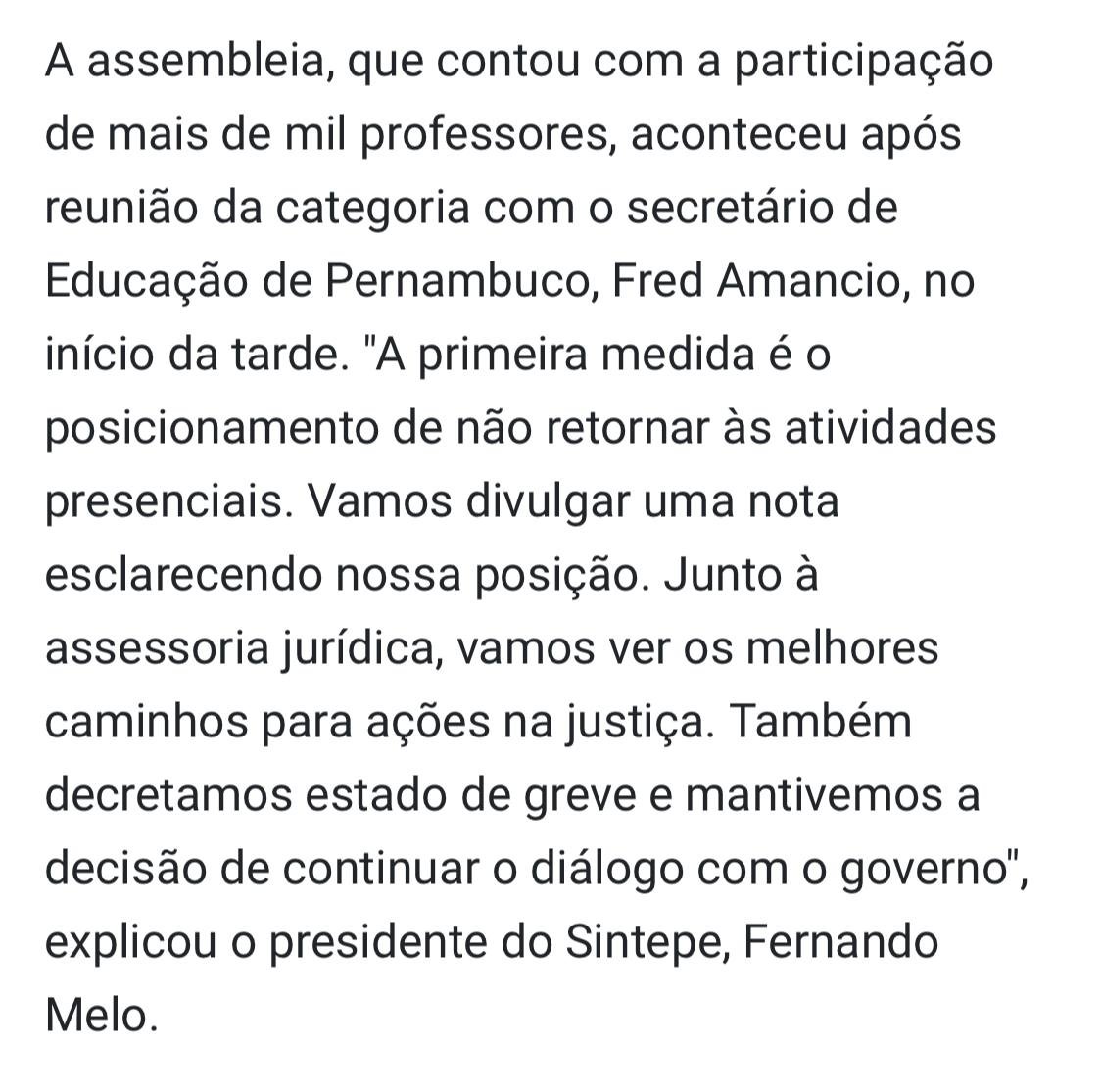 Professores da rede estadual de Pernambuco decretam estado de greve