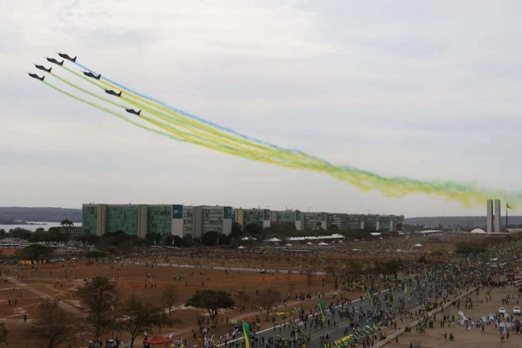 O público lotou a Esplanada dos Ministérios, onde ocorreu o tradicional desfile cívico-militar nesta quarta-feira (7/9), dia da Independência do Brasil. A maioria da plateia vestia roupas verdes e amarelas, em alusão às cores da Bandeira Nacional. Acompanhado da primeira-dama, Michelle, o presidente Jair Bolsonaro (PL) participou das comemorações.