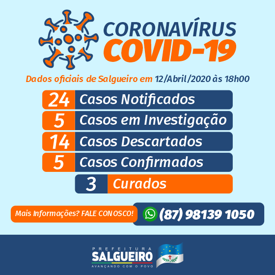 Salgueiro tem 5 casos confirmados para o novo Coronavírus.