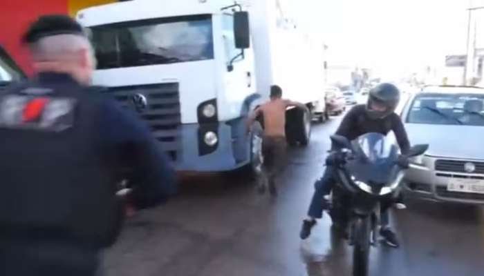 Nas imagens, é possível ver o momento em que Melquisedeque salta do camburão quando os policiais abrem a porta e tenta correr. De acordo com a polícia, ele quebrou a algema durante o trajeto até a delegacia.