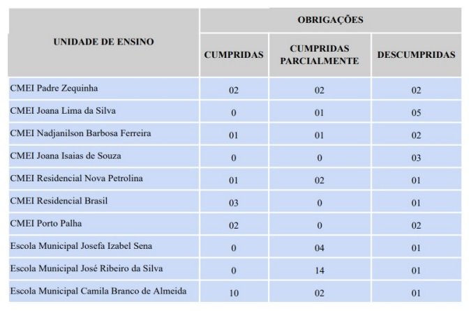 Das 64 obrigações do TAG, a prefeita a de Petrolina cumpriu apenas 19 foram, 26 foram cumpridas parcialmente, e 19 descumpridas. O relator também determinou à Diretoria de Controle Externo do TCE que verifique nas auditorias/inspeções que se seguirem, o cumprimento das determinações.