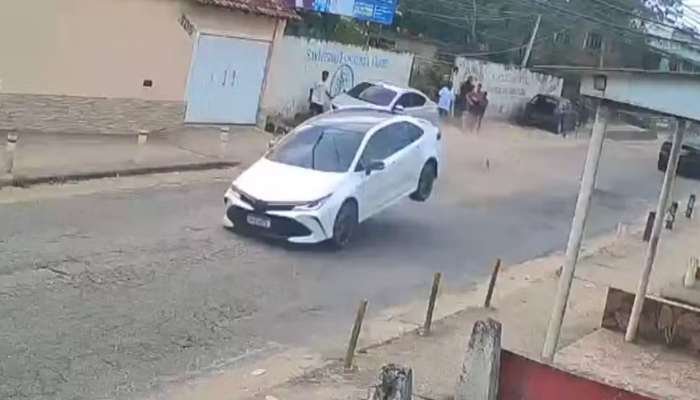 Policiais militares tentavam interceptar suspeitos de um roubo pelas ruas do bairro. Nem um quebra-molas os deteve: os veículos chegaram a “levantar voo” no meio da correria.