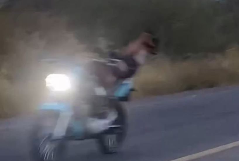 Na gravação, é possível ver dois jovens de motos trafegando em alta velocidade. O vídeo dura cerca de 11 segundos.