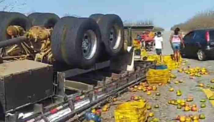 Um caminhão carregado de mangas capotou na manhã desta segunda-feira (7) na PE-360 em Floresta (PE), Sertão de Itaparica. De acordo com informações apuradas pelo Blog do Elvis, o motorista do caminhão (placa JRZ-0470 de Petrolina) morreu na hora esmagado dentro da cabine. A carga foi saqueada por populares. ASSISTA O VÍDEO ABAIXO