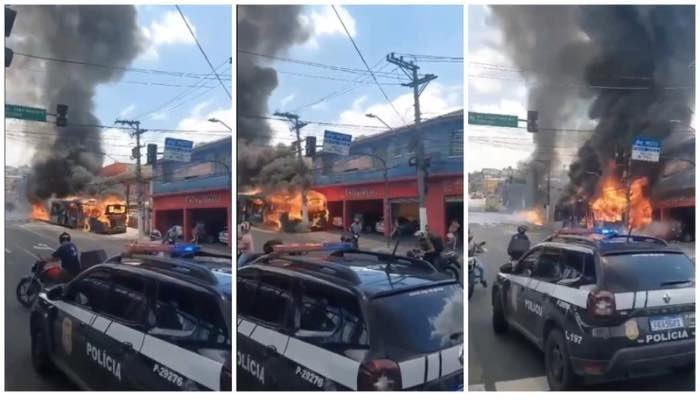 VÍDEO: ônibus em chamas bate em poste e causa grande explosão