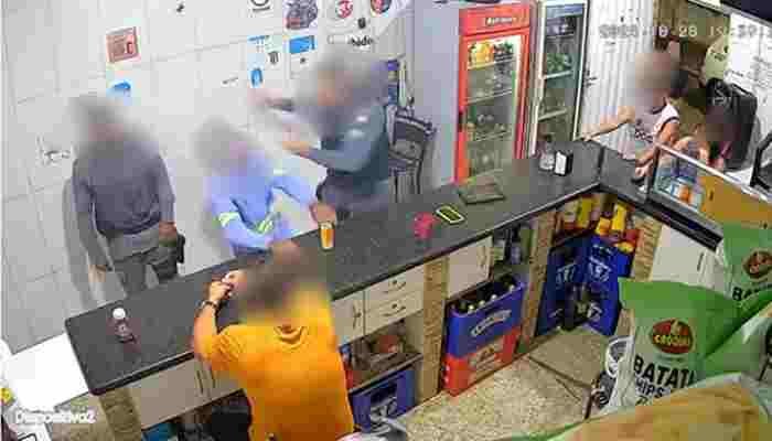 No vídeo, é possível perceber a presença de um homem com uma roupa azul sentado no balcão conversando com outras pessoas no estabelecimento. Dois policiais chegam e abordam o indivíduo com dedo em riste e fazendo ameaças.